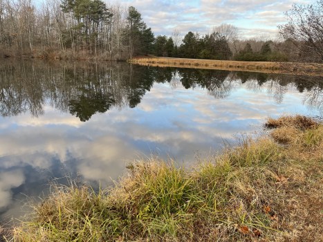water nibbles at pond’s edge.